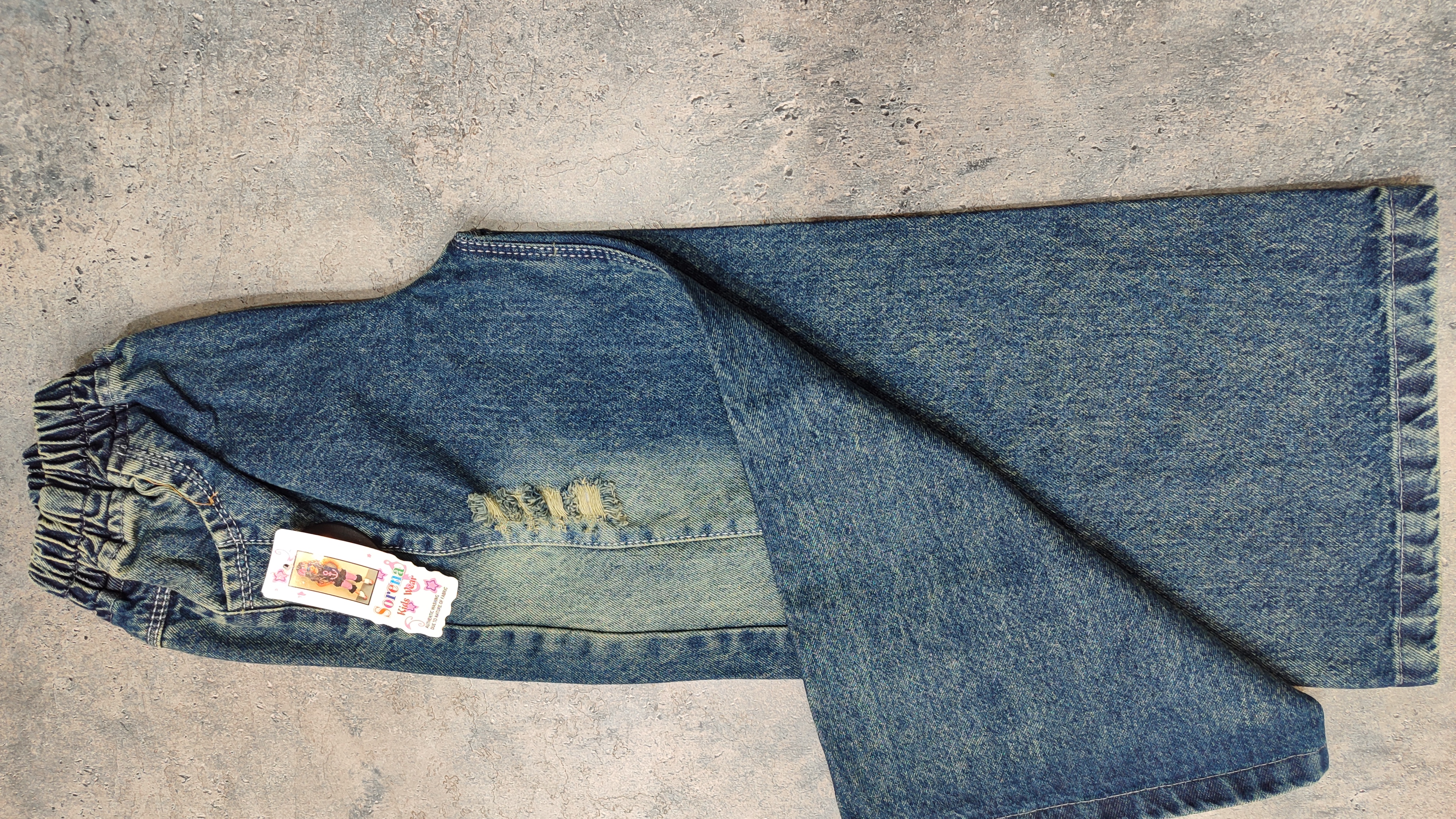 نمای نزدیک از شلوار لی بچگانه مدل شافل دخترانه
